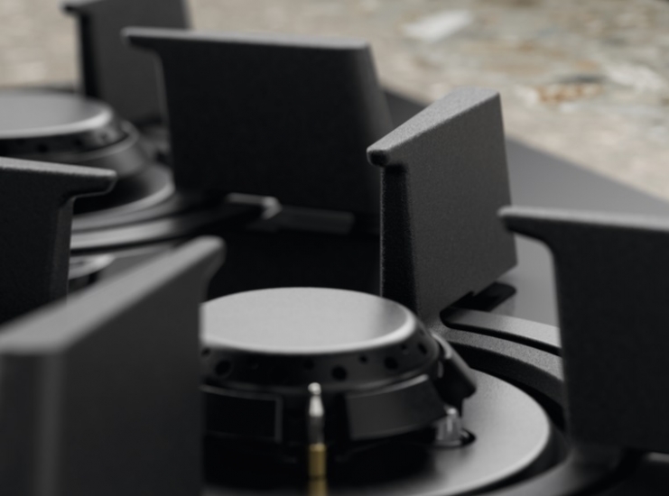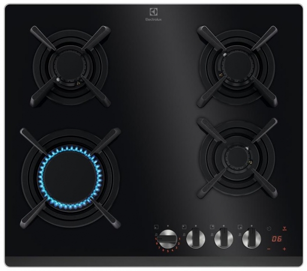 Опис Варильна поверхня Electrolux газова на склі, 60см, чавун, електрон. керування, Hob2Hood, чорний