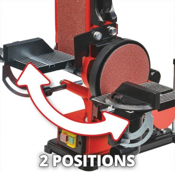 Вертикальна стрічково-дискова шліфувальна машина/шліфувальна машина Einhell TC-US 380 - потужний помічник потужністю 380 Вт для стрічкового та дискового шліфування/шліфування, оснащений поворотним шліфувальним пристроєм з упором для заготівлі. Для зручності переналагодження є натяжний пристрій з можливістю центрування шліфувальної стрічки, а також кріплення з гачком та петлею на дисковій шліфувальній машині/шліфувальному верстаті. Алюмінієвий стіл може нахилятися, він міцний і не схильний до деформації.