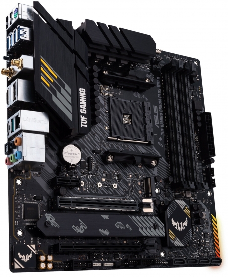 Материнська плата TUF Gaming B550M-Plus WIFI II є відмінною основою для складання високопродуктивного геймерського ПК, яку доповнюють функції для підвищення ігрового комфорту: високошвидкісний мережевий контролер, який мінімізує затримки в онлайн-іграх, якісна аудіосистема, що поліпшує геймплей у шутерах, і вбудоване RGB-підсвічування, яке може бути синхронізовано із сумісними аксесуарами.