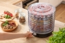 Цей дегідратор геніально розроблений на основі конвекції гарячого повітря для вилучення вологи з продуктів харчування. Під час процесу зневоднення лотки слід обертати, щоб забезпечити рівномірне зневоднення вмісту. Найближчі до дна лотки піддаються найбільшому нагріванню - тут процес зневоднення відбувається швидше. Тому просто вийміть їх і поставте на вищий рівень, а вищі лотки перемістіть ближче до нижньої частини дегідратора.