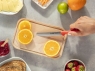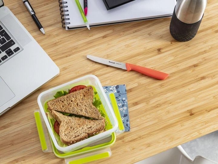 Знайомтесь з новим універсальним кухонним ножем: Tefal Colorfood Serrated. Цей 10-сантиметровий ніж із закругленим кінчиком і зубчастим лезом ідеально підходить для нарізання свіжого хліба, овочів, м'яса, а також для намазування масла/джему, приготування ідеальної закуски тощо. Ніж має легку текстуровану ручку для зручного використання та лезо з німецької нержавіючої сталі для легкої нарізки. Відкрийте для себе повну колекцію та додайте кольору своїй кухні!