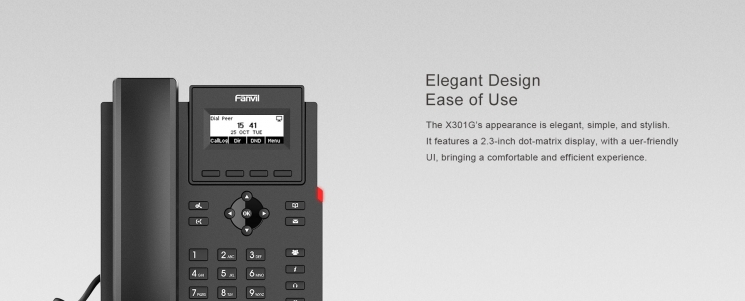 Телефон IP Fanvil X301G 2xGE LAN, SIP, VPN, PoE, 2.3" точково-матричний дисплей
