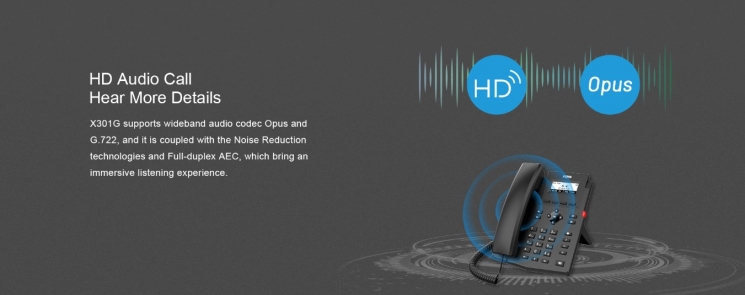 X301G – багатофункціональний гігабітний SIP-телефон початкового рівня. Він оснащений 2,3-дюймовим матричним дисплеєм з роздільною здатністю 128x48 пікселів, підтримує 2 SIP-лінії та 6-сторонню аудіоконференцію, що забезпечує зручність використання. X301G володіє широким набором функцій, таких як HD-аудіо, два мережеві порти 10/100/1000 Мбіт/с та вбудований PoE, що забезпечує ефективне та високоякісне ділове спілкування для підприємств.