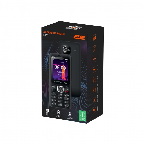 Мобільний телефон 2E E182 отримав назву PHAROS завдяки потужному ліхтарику, яким можна керувати за допомогою окремої бокової клавіші, до того ж він працює навіть коли телефон вимкнено. Користувачі кнопкових телефонів, які мають робітничу професію, вважають, що головною функцією телефона, звісно, після можливості телефонувати, є гарний яскравий ліхтарик із простим керуванням. Адже в повсякденних справах слюсарям, сантехнікам, електрикам і механікам часто-густо потрібно «підсвітити» якусь деталь, що прихована у важкодоступному чи темному місці. Цей телефон поєднує сучасні можливості та класичний дизайн для комфортної комунікації.