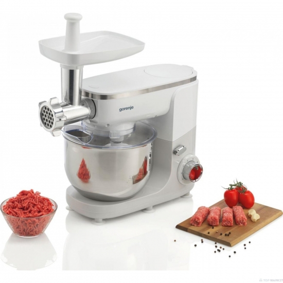 Опис Кухонна машина Gorenje 1000Вт, чаша-метал, корпус-метал/пластик, насадок-6, білий
