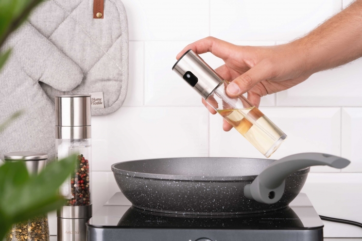 За допомогою розпилювача ARDESTO Gemini можна рівномірно нанести на продукти необхідну кількість олії чи оцту. Стане в пригоді для заправки салатів, під час смаження чи випікання. Складається з двох частин: ємності об’ємом 100 мл і власне розпилювача, який надійно фіксується. Виготовлено з міцного скла, нержавіючої сталі та пластику. Мити в посудомийній машині не можна.