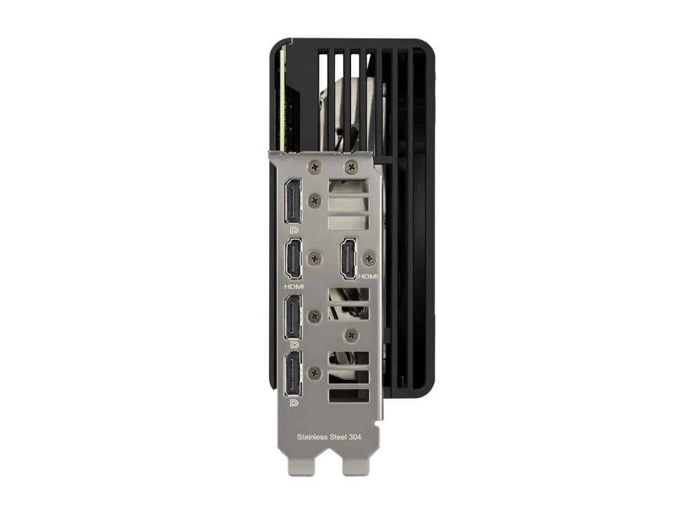 Великий радіатор має спеціальну конструкцію, що ефективно розсіює тепло, згенероване графічним процесором GeForce RTX 4070 Ti. Тепле повітря від радіатора відводиться трьома вентиляторами Axial-tech.