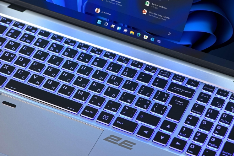 Повнорозмірна клавіатура з калькуляторним блоком праворуч має повну українську локалізацію та багатоколірне підсвічування. Налаштовується колір та яскравість через фірмовий додаток Control Center. Там же можна перемикати профілі енергоспоживання: безшумний, ощадливий, універсальний і продуктивний. Батарея збільшеної ємності 73 Вт*год, чого вистачає до 17 годин автономної роботи.