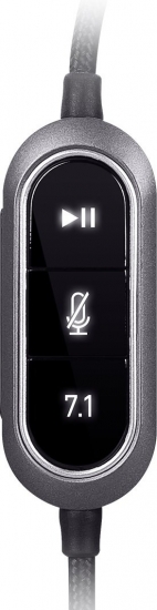 Вбудований контролер дає змогу моментально керувати відтворенням, перемикати режим просторового звучання 7.1, вимикати мікрофон і регулювати гучність.