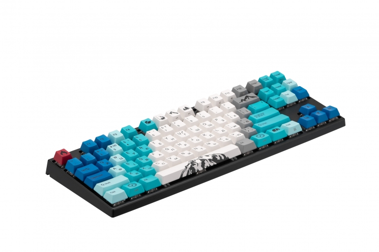 Механічна клавіатура для митців та гравців в альпійському стилі. Натхнення безмежними горами тепер щодня поруч. Кольоровий малюнок на розкладці зображує символічну засніжену вершину в горах, на клавішах нанесені символи альпінізму, а на Enter наведені координати гори Галлхепігген в Норвегії, зображення якої прикрашає тильну сторону кейборду.