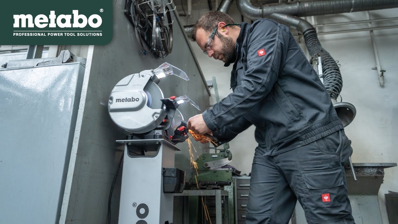 Інструмент з особливо високим крутним моментом, оснащений трифазним електродвигуном для великих навантажень. Для шліфування, заточення, зачищення та зняття іржі на сталі і металах, кухонних приборах, інструментах і садово-городніх пристроях. Придатний для використання щіток зі сталевим дротом для видалення іржі. Вбудований світлодіодний ліхтар для оптимального освітлення робочої зони. Велика здатна нахилятися опора для інструмента з практичним V-подібним пазом для скошування країв зварних швів.