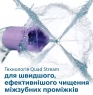 Ретельне чищення міжзубних проміжків для покращення стану ясен без зусиль. Унікальна хрестоподібна насадка з технологією Quad Stream охоплює максимальну площу міжзубних проміжків для більш ефективного та легкого очищення з меншими зусиллями. Унікальна хрестоподібна насадка Quad Stream очищає ефективніше завдяки хрестоподібному потоку води у чотирьох напрямках, охоплює максимальну площу міжзубних проміжків та ясен. Ніжні імпульси води сприяють чищенню і спрямовують вас від зуба до зуба в режимі ретельного чищення для завжди відмінного результату.