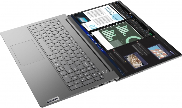 Екран Lenovo ThinkBook 15 G4 із покриттям з антивідблиском базується на IPS-матриці з роздільною здатністю Full HD. Його яскравість становить 300 ніт, а діагональ — 15,6 дюйма. Такі характеристики забезпечують контрастне та деталізоване зображення, з візуальним контентом приємно та зручно працювати навіть під занадто яскравим освітленням. Завдяки технології зниження шкідливого синього випромінювання користувач не відчуватиме підвищених зорових навантажень.