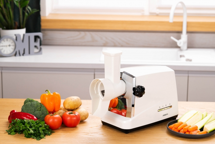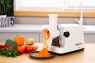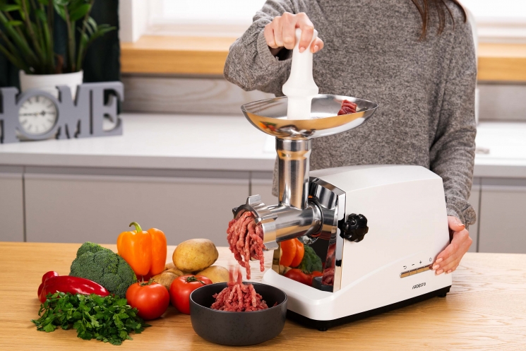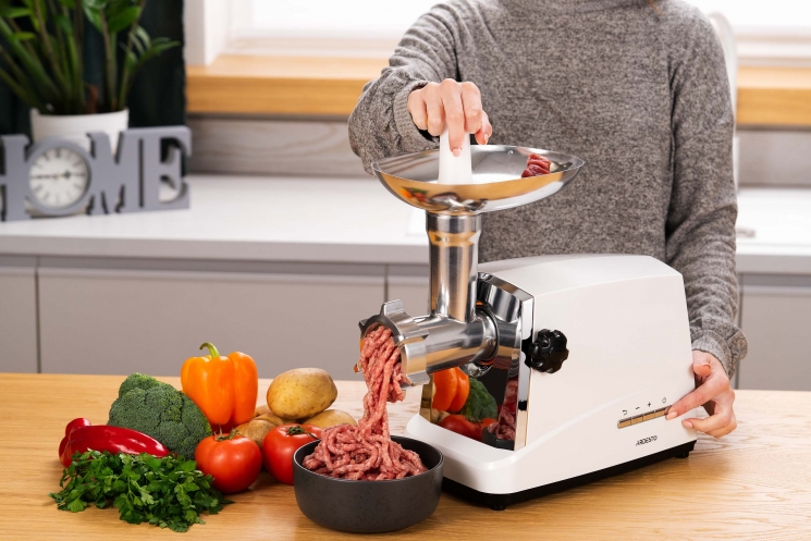 Корпус виконаний у біло-сріблястому кольорі, тож модель чудово пасуватиме до сучасних, мінімалістських кухонних інтер’єрів. Звісно, дизайн – це ще не все, за елегантною оболонкою приховано неабияку міць: завдяки максимальній потужності 1 750 Вт можна бути впевненими, що м’ясорубка впорається з будь-яким завданням – від подрібнення жилавого м’яса до приготування ніжного фруктового пюре. З огляду на продуктивність 2 кг/хв, модель може легко конкурувати з професійними, при цьому залишаючись зручною та компактною для домашньої кухні. Зручність використання м’ясорубки зумовлюють особливості конструкції, зокрема широкий завантажувальний отвір і ємний лоток, зручний штовхач і знімний шнек.