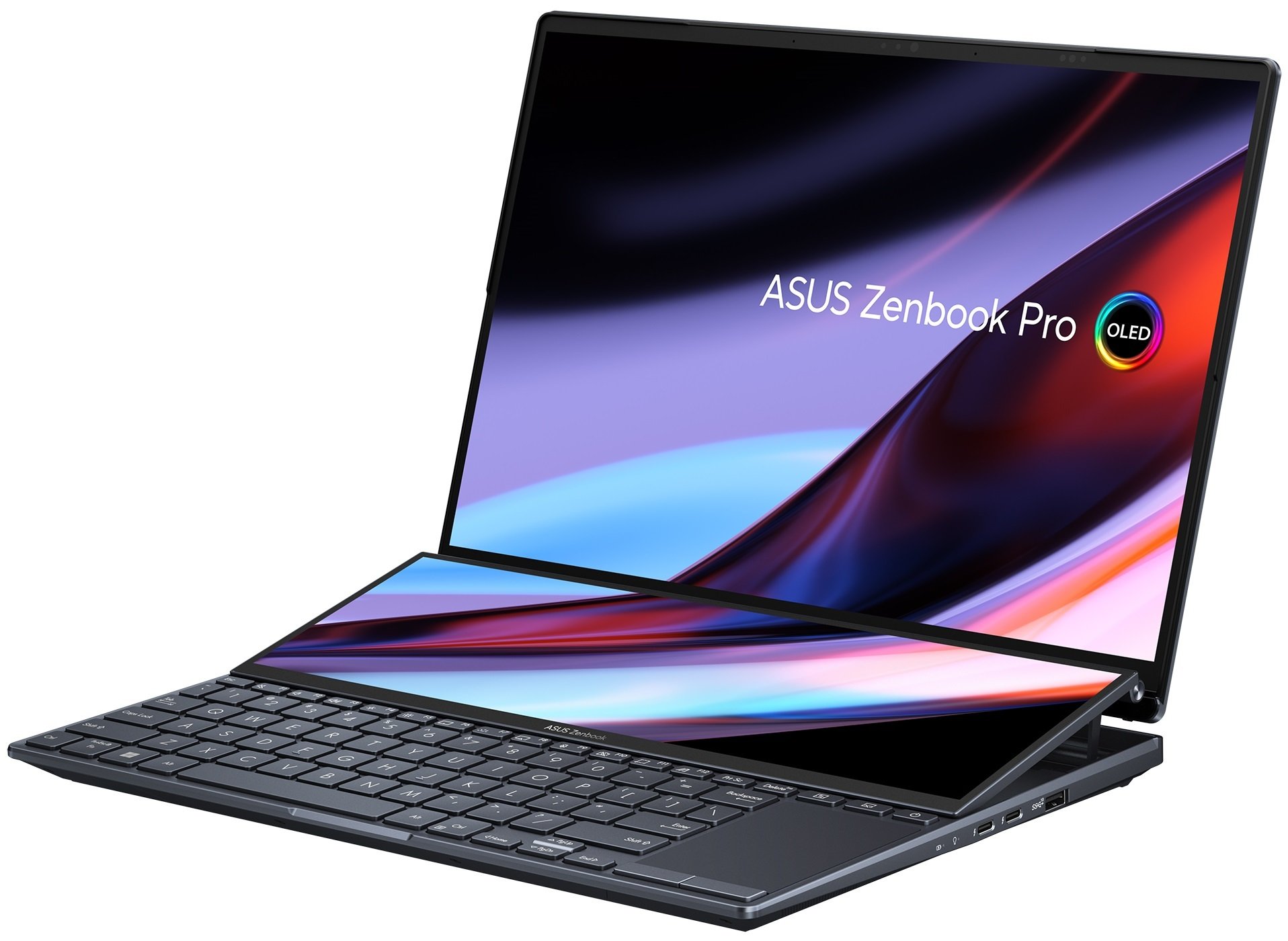 Графіку студійного класу відтворює основний сенсорний дисплей OLED HDR (2,8K,16:10)2 з частотою оновлення 120 Гц. Цей дисплей відображає широку гаму відтінків (100% DCI-P3) і відзначається точним відтворенням кольорів, що підтверджено сертифікацією PANTONE® Validated. Компактний Zenbook Pro 14 Duo OLED є ідеальним OLED-ноутбуком для вимогливих користувачів, які працюють із мультимедійним контентом.