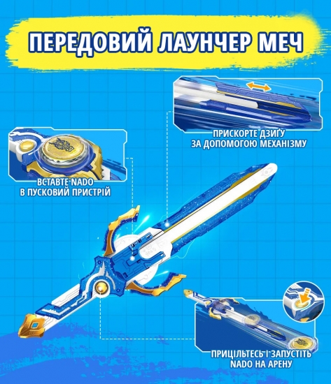Новий пусковий пристрій виконаний у вигляді збільшеного бойового меча. Окрім зовнішнього вигляду змін зазнав і метод установки та прискорення дзиґи. Відтепер процес установки і фіксації дзиґи у передовому лаунчері став ще простішим, а прискорення відбувається за новим принципом, що забезпечує високий контроль та приголомшуючу потужність запуску.