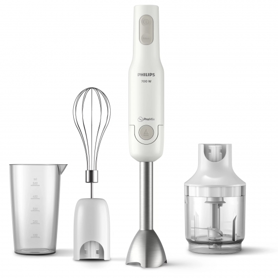 Насадка, що запобігає розбризкуванню. Особлива хвилеподібна форма нижньої частини занурювальної насадки блендера захищає від розбризкування під час приготування страв, залишаючи робочу поверхню чистою. Ергономічний дизайн. Міцна конструкція та ергономічний дизайн забезпечують зручність використання. Сучасна технологія змішування ProMix. Унікальна технологія Philips ProMix розроблена у співпраці з фахівцями престижного Штутгартського університету і являє собою насадку трикутної форми, яка гарантує плавне, швидке та ефективне змішування для досягнення однорідної консистенції.