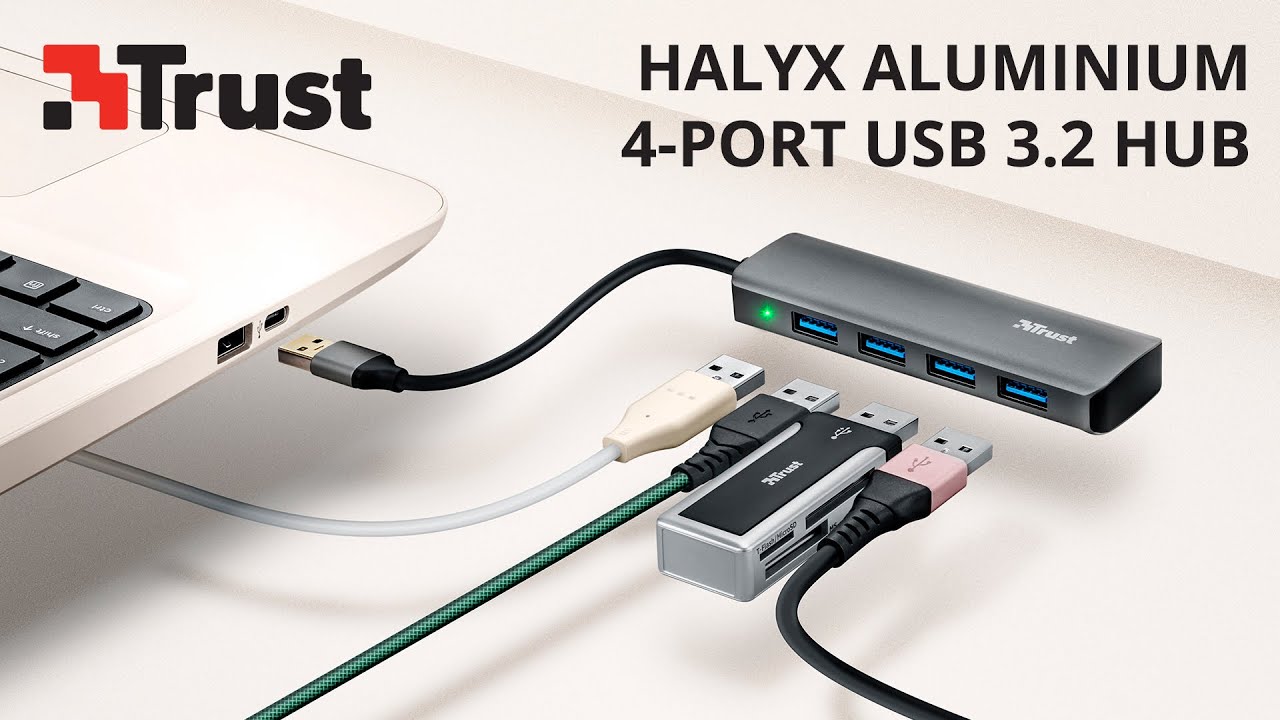 Де купити: Хаб Trust Halyx USB-A > 4xUSB-А 3.2, Алюміній, 0.1м, Сірий: