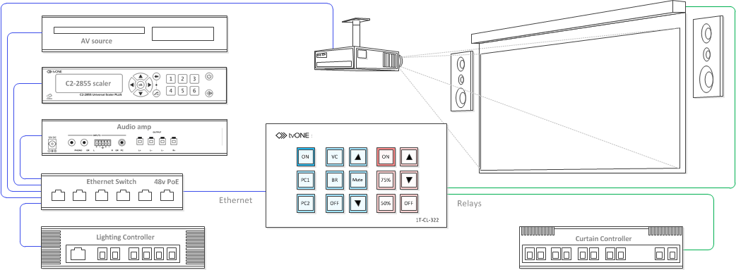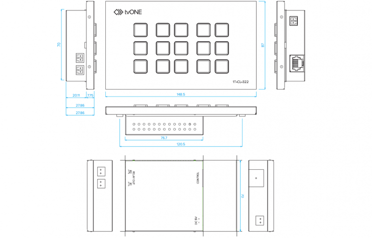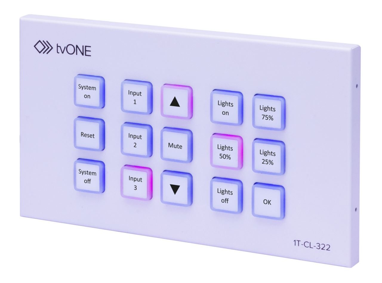 Підтримується планування часу та дати, що дозволяє користувачеві повністю автоматизувати свою систему, додаючи контроль там, де технічний нагляд недоступний. Це може бути використано для ввімкнення та вимкнення системи або зміни налаштування сцени. Логіку світлодіодних кнопок можна налаштувати, щоб додати користувачеві рівень зворотного зв'язку. Програмування та конфігурація 1T-CL-322 здійснюється за допомогою простого, але гнучкого WebUI, що дозволяє адміністратору віддалено керувати функціями панелей управління через мережу. Емулятор панелі дозволяє програмісту перевіряти функціональність та віддалене управління системою в режимі реального часу, це також може бути корисно для віддаленого управління системою.