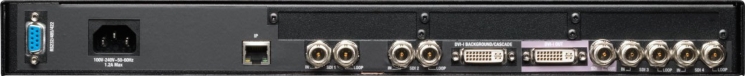 Підтримуються роздільна здатність 3G-SDI до 1080p60. Для переплетених джерел SDI та YPbPr доступне високоефективне детерліцінг із адаптивним зменшенням шуму. Пристрій забезпечує вихід DVI-I, а також повторюваний вихід 3G-SDI.