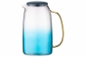 Глечик вироблений із якісного боросилікатного скла: матеріал вирізняється термостійкістю – від -20 до +150 °C. Кришка, виготовлена з м’якого й еластичного силікону, гарантує герметичність і зручність під час використання глека. Головним акцентом дизайну є блакитний колір нижньої частини ємності. Золотисте руків’я додає ноток елегантності.