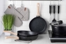 Особливістю виробу є ергономічне руків’я із soft-touch-покриттям, яке не нагрівається, – запорука комфортного хвату. ARDESTO Midori сумісна з різними видами плит, зокрема газовими, електричними, склокерамічними, галогенними та індукційними. У комплекті міститься протектор для зберігання з фетру, який згодиться як підставка під гаряче.