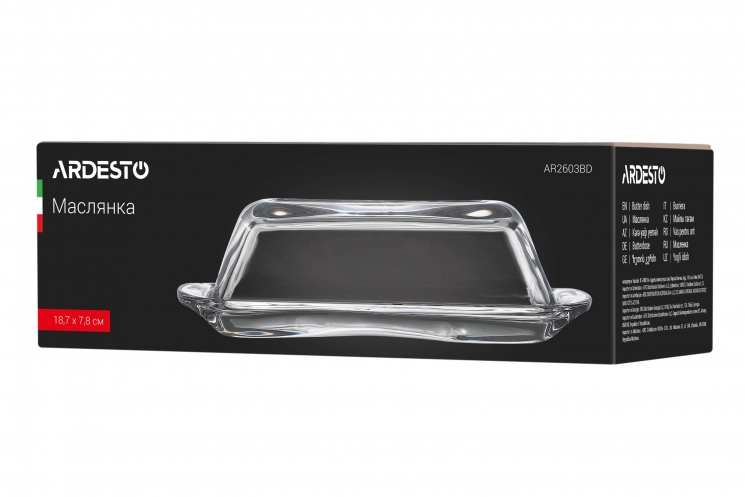 Де купити: Маслянка ARDESTO, 18.7х7.8см, скло, прозорий:
