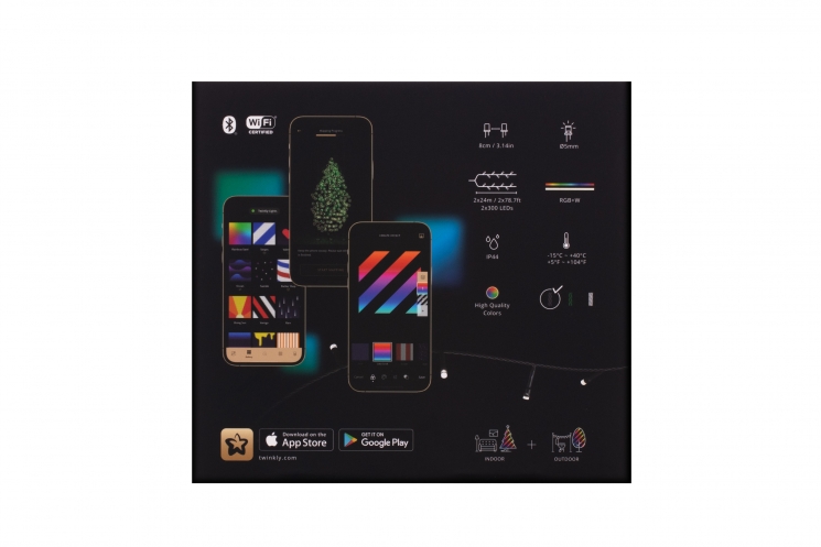 Twinkly RGBW видає революційно якісне яскраве, багате світло, це можливо завдяки запатентованим спеціальним конструкціям об'єктивів світлодіодів: матово-пласким верхів'ям та прозорим корпусом для рівномірного дифузного сяяння і прозоро-блискучого світла без втрати виразності світла і кольорів. Джерело світлодіодного світла плавно переливається, адресно керовано на кожному светодиоде гірлянди або їх масиві при об'єднанні, підкреслює святковість атмосфери.