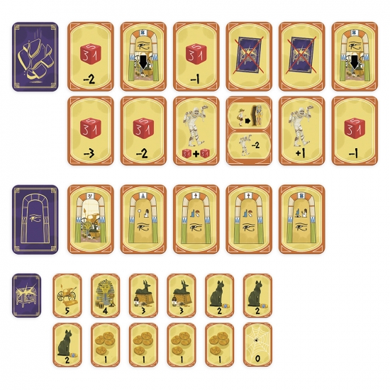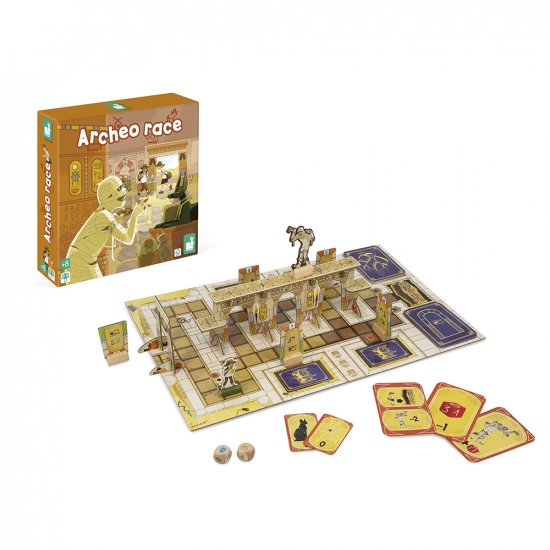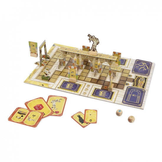 Кожен хід гравець чергує роль дослідника та роль мумії. Кожен персонаж має свої кубики. Настільна гра, повна пасток і скарбів, у якій вам потрібно бути пильним, щоб виграти! Мумія налаштована не дозволияти вам піти зі своїми мощами. Маленькі шанувальники археології будуть у захваті! Ця 3D настільна гра містить: 1 дошку, 3 персонажів (мумію, дівчинку та хлопчика-дослідника), 2 кубики, 36 картонних елементів (12 карток скарбів, 12 карток пасток і декоративних елементів). Цей продукт виготовлено з FSC®-сертифікованого та іншого контрольованого матеріалу
