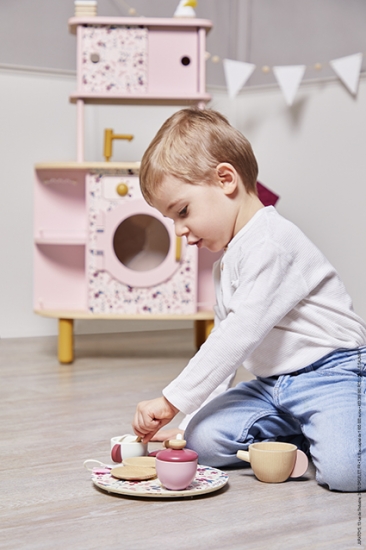 Потрібно трохи більше місця на кухні? Ми розібралися... відкрийте центральний розділ, щоб дізнатися, що приховано в ньому, і збільшити можливості для гри. Засувка тримає кухню закритою, коли час гри закінчився. Ця необхідна дерев’яна гра-ігра ідеально підходить для дітей віком від 3 років і допомагає розвивати уяву, оскільки діти можуть вільно створювати численні оригінальні страви та веселі ситуації завдяки сторонам як кухні, так і пральної машини!