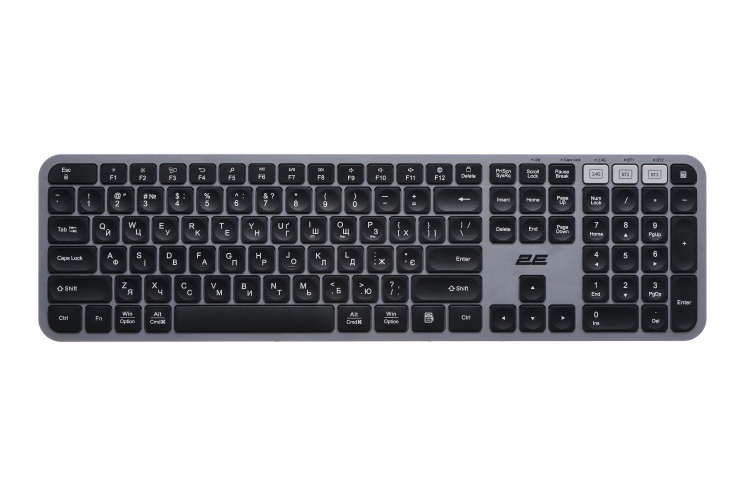 Однією з головних особливостей клавіатури 2E KS240 є можливість підключення відразу до кількох пристроїв, а все завдяки USB-адаптеру та двом режимам Bluetooth. Достатньо лише один раз під’єднати ноутбук, смартфон чи планшет до клавіатури, і можна без зайвих зусиль перемикатися між пристроями, натискаючи лише три клавіші.