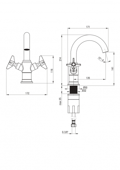 | Вид змішувача | двовентильний |
