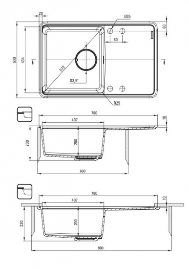 Головна - Побутова техніка, інструменти та товари для дому - Сантехніка - Кухонні мийки - Deante - Мийка кухонна Momi, граніт, прямокут., з крилом, 780х500х230мм, чаша - 1, врізна, антрацит + кухонна дошка