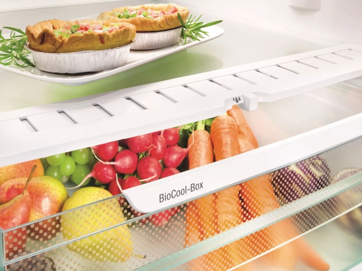 Відділення BioCool дозволяє регулювати рівень вологості в холодильному відділенні для збільшення свіжості овочів і фруктів. Для кращого огляду і зручної експлуатації контейнери встановлені на спеціальні ролики або телескопічні направляючі. Установка рівня вологості здійснюється за допомогою спеціального регулятора.