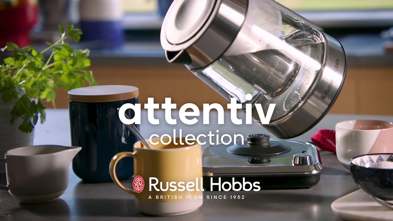 Головна - Побутова техніка, інструменти та товари для дому - Техніка для кухні - Для приготування напоїв - Електрочайники - Russell Hobbs - Електрочайник Attentiv Kettle, 1.7л, Strix, скло, база зі сховищем для шнура, сірий