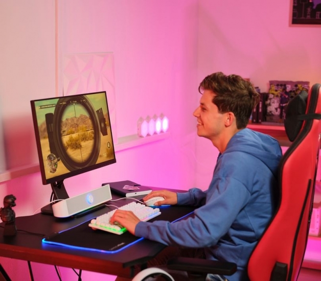 Завдяки компактній конструкції саундбар можна легко розмістити під монітором, звільнивши робочий стіл для інших предметів і аксесуарів.
