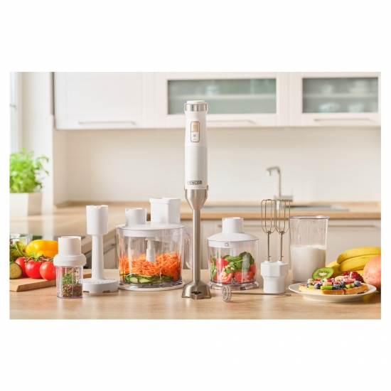 Блендер погружной Sencor, 1500Вт, 10в1, чаша-800мл, мельница для трав, вспенитель молока, белый