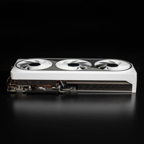 Парова камера безпосередньо контактує з графічним процесором у поєднанні з композитними тепловими трубками, які швидко передають тепло від GPU та VRAM до радіатора.