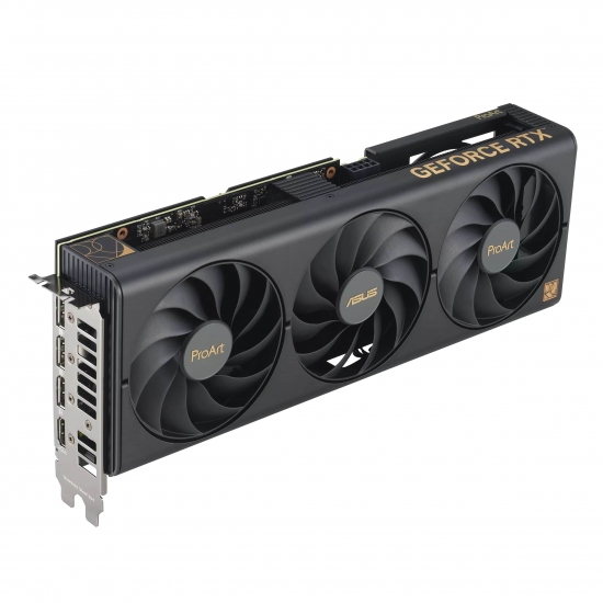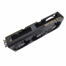 Два бічні вентилятори обертаються проти годинникової стрілки, щоб мінімізувати турбулентність і максимізувати розсіювання повітря через радіатор. Усі три вентилятори зупиняються, коли температура графічного процесора опускається нижче 45 градусів за Цельсієм, дозволяючи вам грати в менш вимогливі ігри або виконувати легкі завдання у відносній тиші. Вентилятори знову запускаються, коли температура перевищує 50 градусів за Цельсієм, посилаючись на криву швидкості, яка балансує між продуктивністю та акустикою для роботи та ігор.