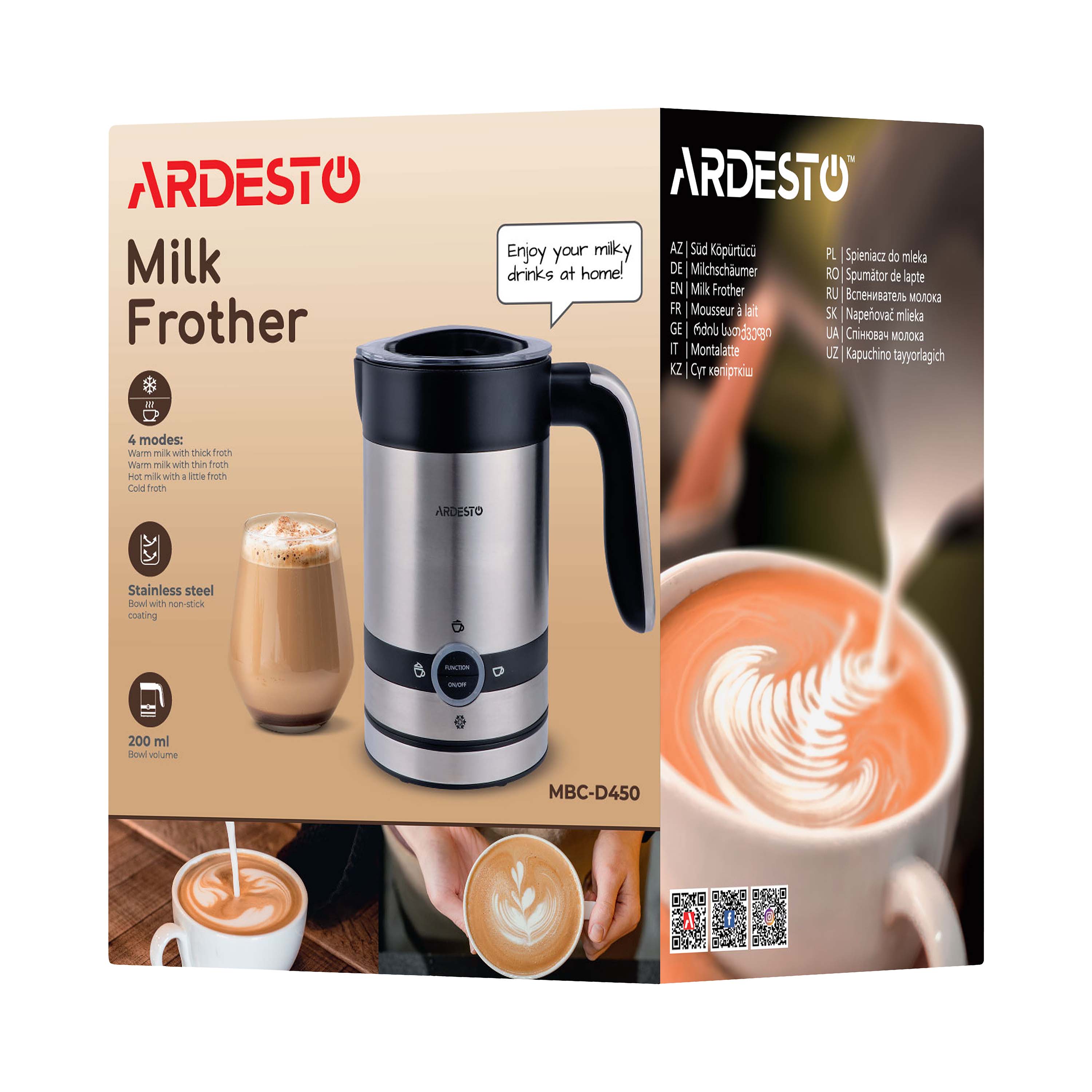Опис Спінювач-підігрівач Ardesto 450Вт, ємність резервуару-200мл, сріблясто-чорний