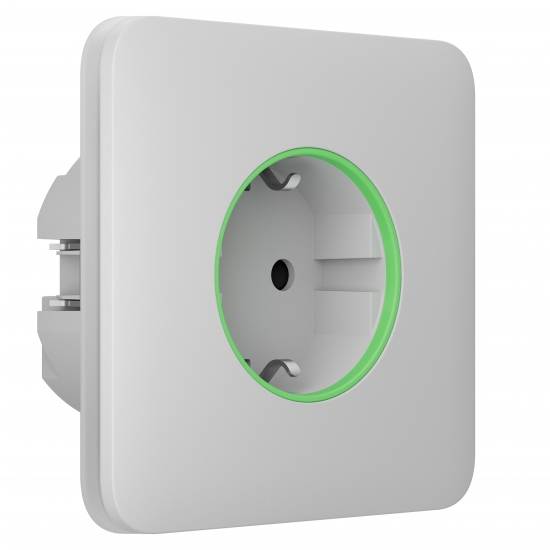 Outlet [type F] Jeweller — це розумна вбудована розетка з функцією моніторингу споживання електроенергії. Керувати її роботою можна дистанційно через мобільний застосунок Ajax. Можливості Outlet найкраще розкриваються в сценаріях автоматизації. Можна автоматично вмикати розетки за розкладом або вимикати їх, у випадку пожежної тривоги або якщо систему встановлюють під охорону. Також розетки можна комбінувати з розумними вимикачами LightSwitch.