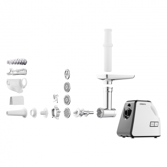 М'ясорубка ARDESTO, 2300Вт, продук.-2.2кг/хв, 4 решітки + для ковб., кеббе, насадка для томатів, пластик, біло-чорний