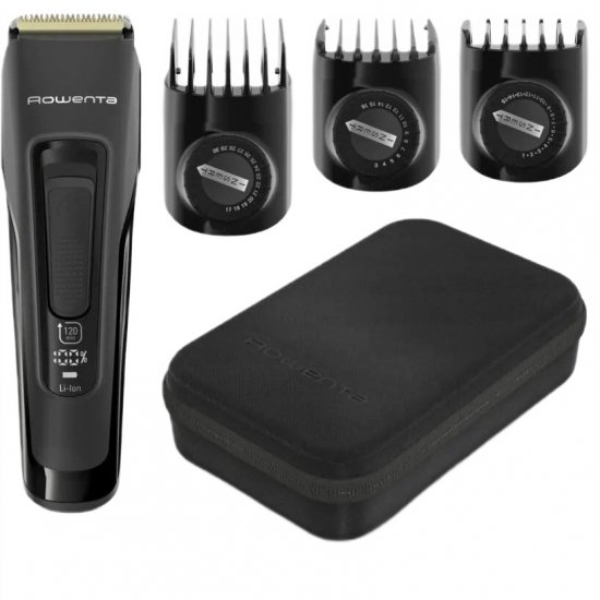 Опис Машинка для стрижки Rowenta Advancer, мережа+акум., роторний мотор, насадок-3, кейс, титан.напил., чорний