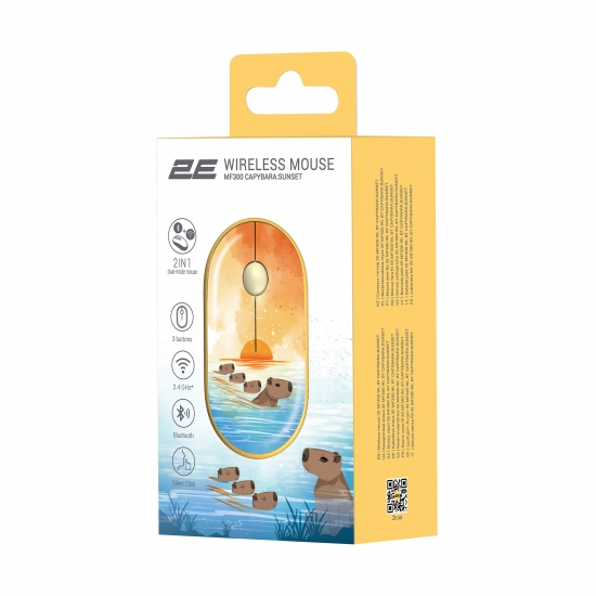 Мышь беспроводная 2E MF300 Capybara Sunset Silent WL BT Yellow (2E-MF300WCAPIBARAYW)