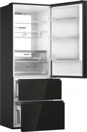 Холодильник Haier багатодверний, 200.6x70х67.5, холод.відд.-343л, мороз.відд.-140л, 3дв., А++, NF, інв., дисплей, зона нульова, чорний (скло)