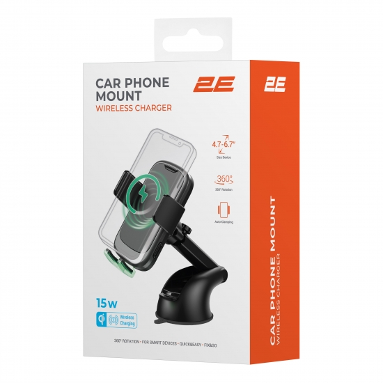 Опис Автомобільний тримач смартфона 2Е автоматичний/бездротова зарядка 4.7-7", чорний