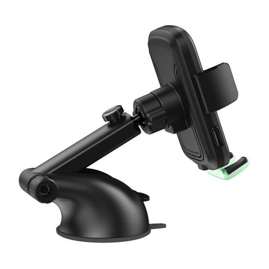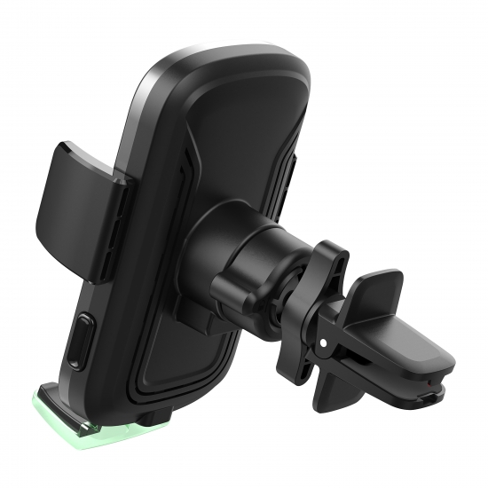 Із вбудованим світлодіодним підсвічуванням легко визначити місце заряджання в темряві. Тримач має вбудовану бездротову зарядку потужністю 5 Вт; 7,5 Вт; 10 Вт; 15 Вт, що дасть змогу зарядити смартфон із високою швидкістю. Зарядний пристрій оснащений розумним чипом для захисту пристроїв від короткого замикання, перенапруги, перегрівання та перевантаження струму.