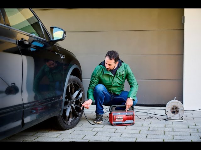Опис Компресор автомобільний гібридний Einhell PRESSITO 18/25 Hybrid, PXC, 230/18В, 11бар, 25л/хв, вис. і низьк. тиск, можливість всмоктування, шланг 710мм, 2.05кг, без АКБ та ЗП
