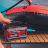 Фактичний і цільовий тиск можна зчитати в барах, psi або кПа. У поставку включено комплект адаптерів 4 предметів, а також кабелі та шланги які зберігаються у вбудованих відсіках. Компактний і легкий компресор можна легко прибрати, а також можна легко взяти з собою туди, де він потрібен. Інструмент поставляється без акумулятора і зарядного пристрою, але він може бути приведений в дію за допомогою Power X-Change акумулятора.