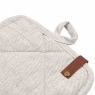 Стильна та практична прихватка світло-сірого кольору стане незамінним помічником на кухні. Вироблена з якісної 100 % бавовни, має розмір 20 × 20 см, що зумовлює універсальність і зручність використання. Наповнювач із ватину забезпечує захист від опіків. Для збереження первинного вигляду прихватки варто дотримуватися рекомендацій щодо догляду: прати в машині за делікатного режиму (30 °C); не сушити в сушильній машині, а тільки у вертикальному положенні; прасувати за температури до 150 °C; також заборонено відбілювання та хімчистка.